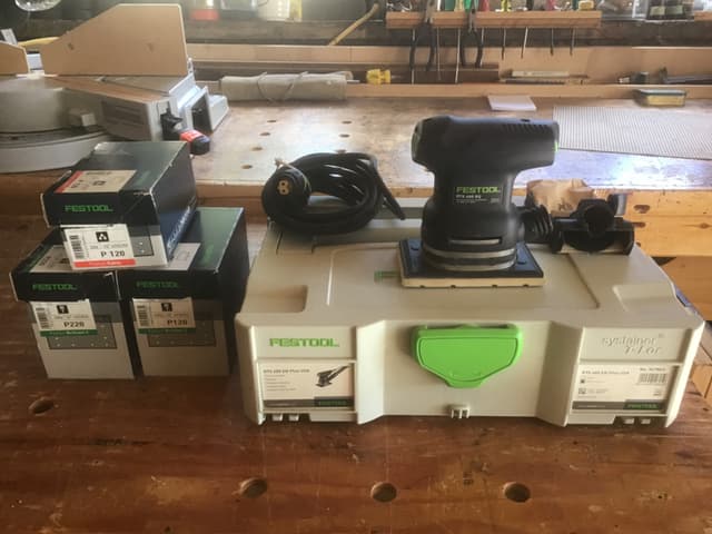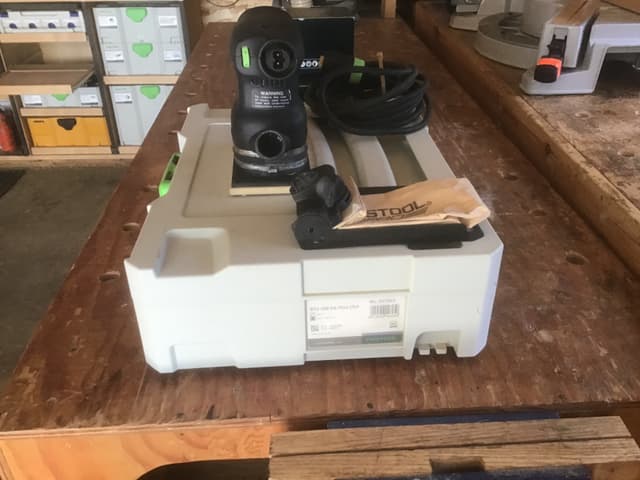 Festool rts electric sander, German made quality,3 boxes of half full sand paper ,comes in protective carry case.