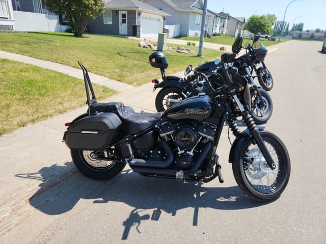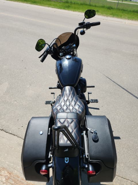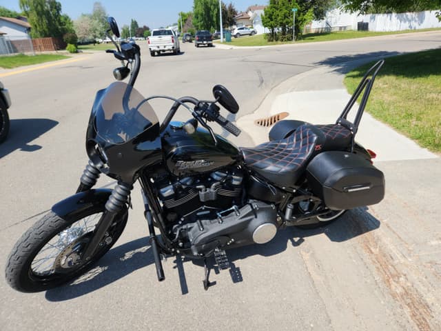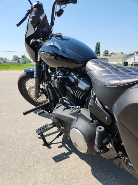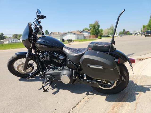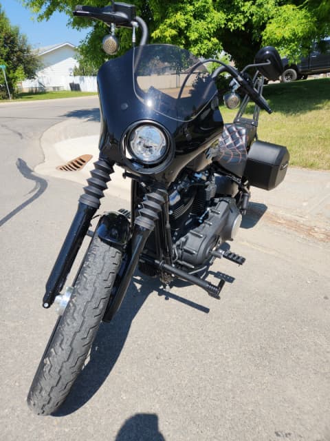 For sale. 2020 streetbob 107 16100 km always stored in a heated garage. Corbin and saddlmen two up seats. Sissybar and passeneger pegs. Viking hard leather wrapped saddlebags. Upgraded break and clutch levers and grips. Crashbar. Upgraded rider pegs. Stage 1 tuned with a vance and hynes short shot exhaust. Memphis shades gauntlet fairing with available laminar lip windshield extension and harley OEM cruise control kit not installed new in the box with proper fitment. In excellent condition tires are both in good shape. Just serviced including three hole oil change. Asking 16,900 Call or text @ 780- 333- 1191 financing available through Harley Davidson of Edmonton.