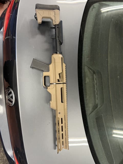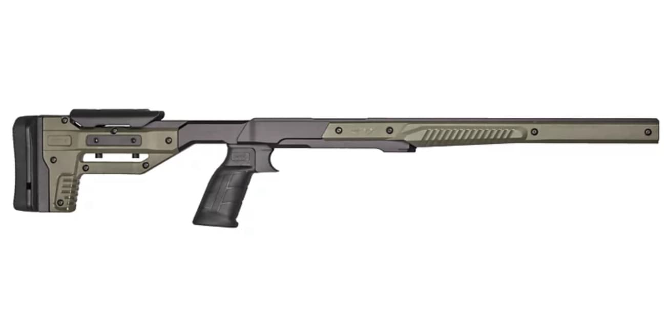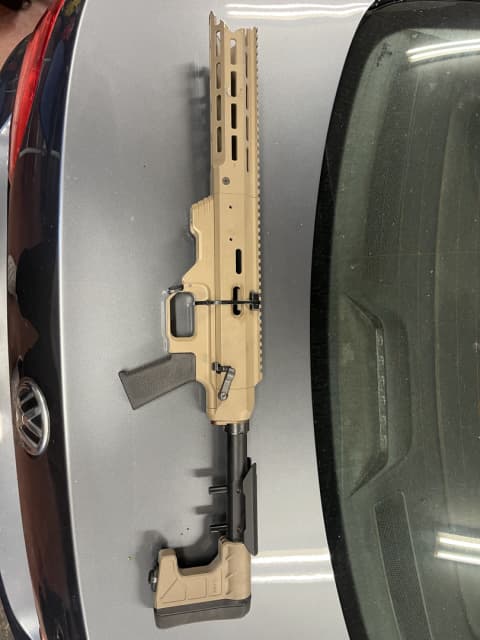 Used MDT Tac21 chassis for a tikka short action riffle. Tan with rear stock and grip.