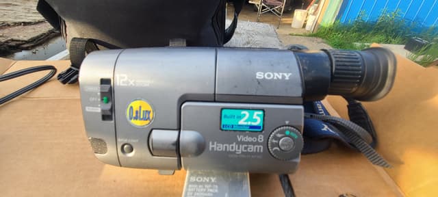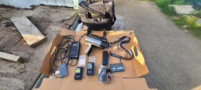 Camera works great! 2 6V Battery's 1 @ 800mAh, 1 @ 2400mAh. TV connection cables, 1- 8mm 120min tape. FUJIX professional camera bag, many velco adjustable pouches with great cushion to keep safe in those bumpy situations. Great fun with quality.