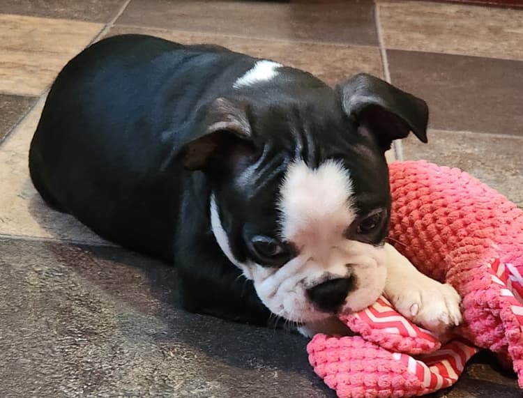 She’ll come with her crate, toys, food, and supplies.