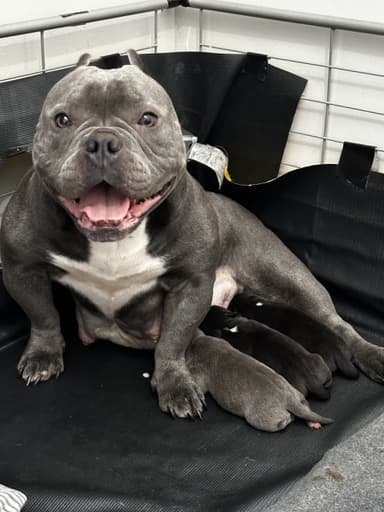 Mom is out of my GMH WCX female who is out of NFC Mickey & NFC Troubadour bitch line with FC Bronco 4X Canadian Nationals Finalist as her sire. Mom is a finished dog has 100% pass rate in Masters.